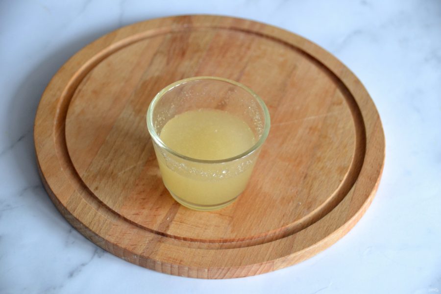 Приготовьте желатиновую массу, для этого возьмите воду и желатин. При приготовлении желатиновой массы руководствуйтесь указаниями с упаковки с желатином.