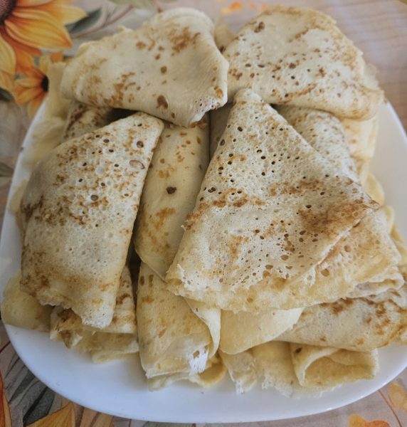 Выложите блинчики на тарелку, подавайте их с медом, со сметаной или джемом.