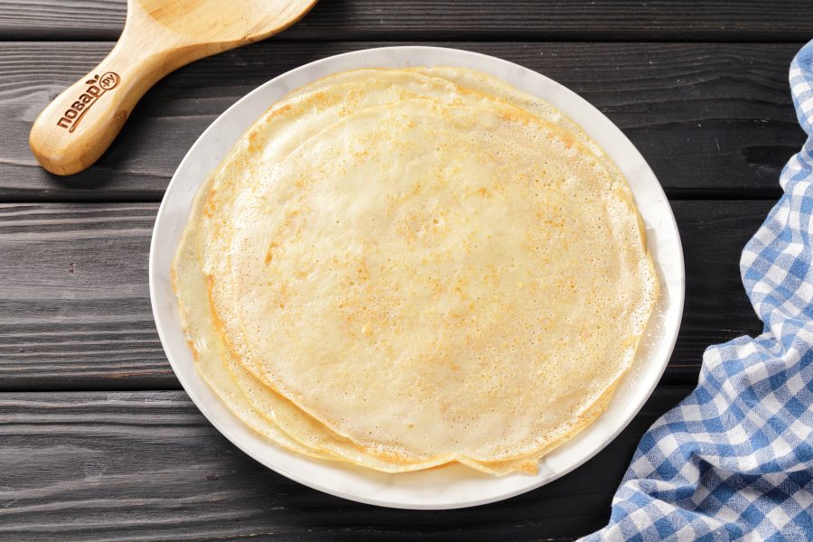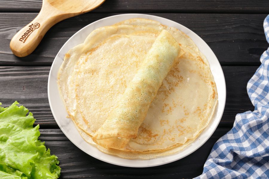 Для удобства употребления и сервировки нарежьте блины на 3-4 части.