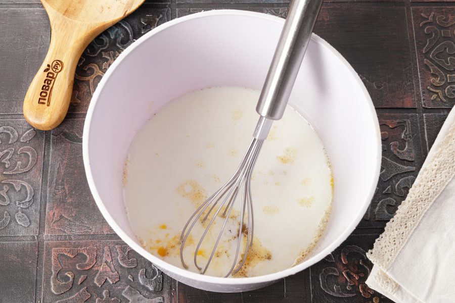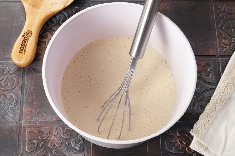 Перемешайте и дайте тесту постоять 10-15 минут. За это время приготовьте начинку.
