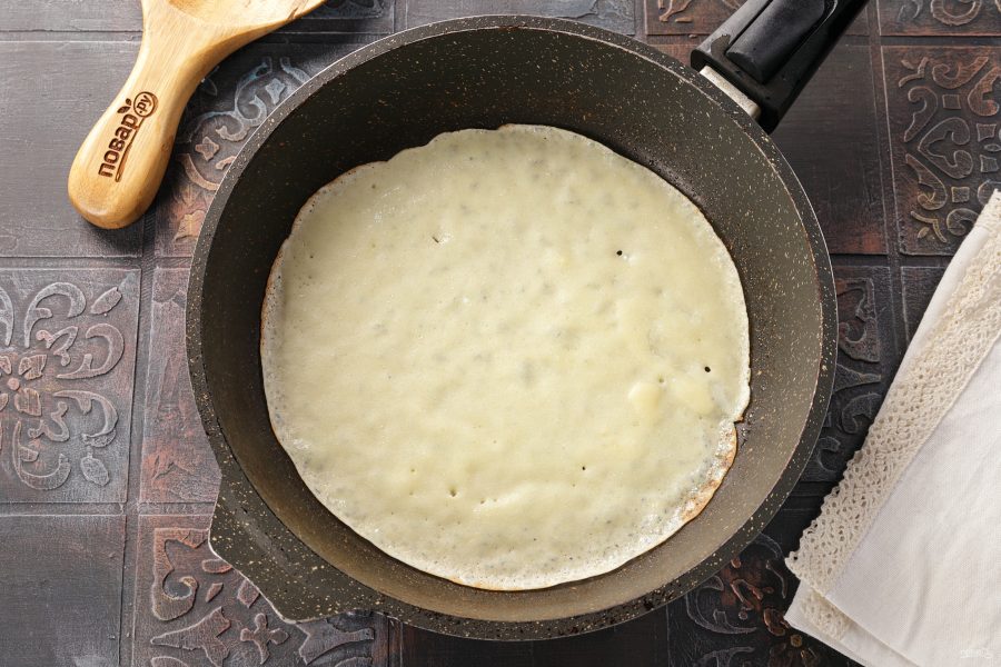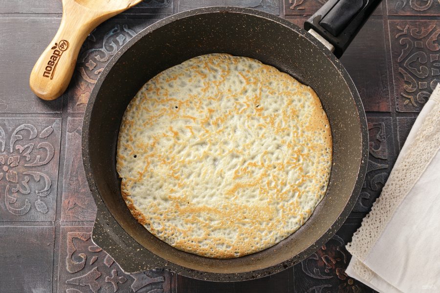 Выпекайте примерно 1-1,5 минуты. Переверните блин.