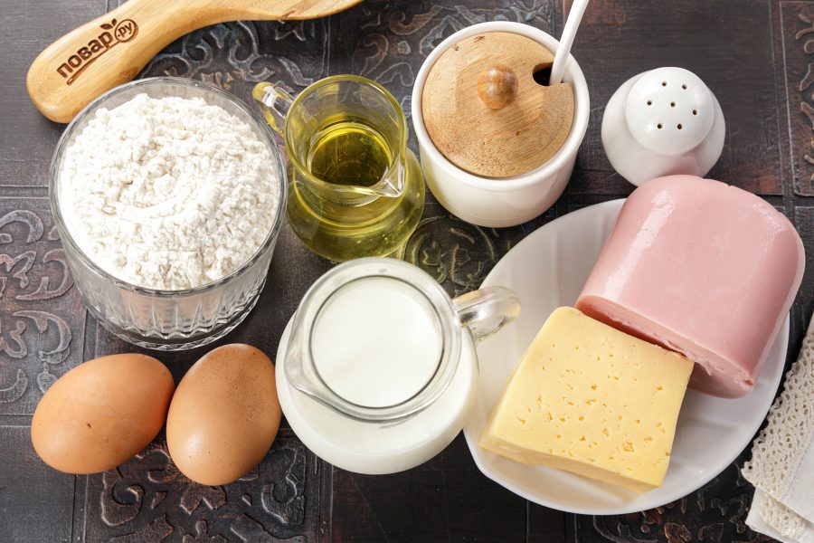 Подготовьте все ингредиенты по списку. Ветчину берите ту, что больше нравится. У меня сегодня ветчина из индейки. Сыр подойдёт любой, который хорошо плавится.