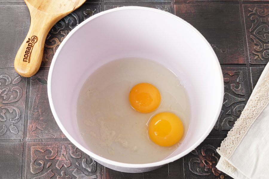 Разбейте яйца в глубокую миску. Добавьте соль и сахар.