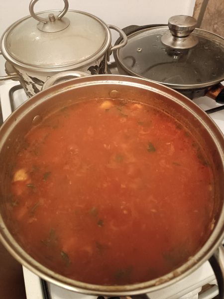11. Переложите овощи в кастрюлю. Добавьте соль по вкусу и оставьте вариться еще минут на 10 на медленном огне.
