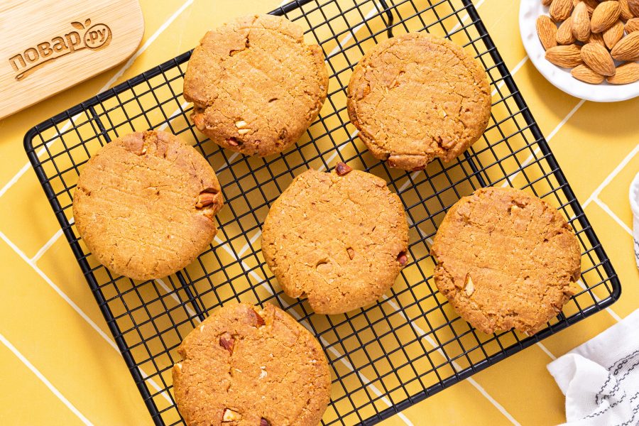 Готовое печенье чуть остудите на противне, затем переложите на решетку и полностью остудите. В начале оно будет мягким, а после станет хрустящим.