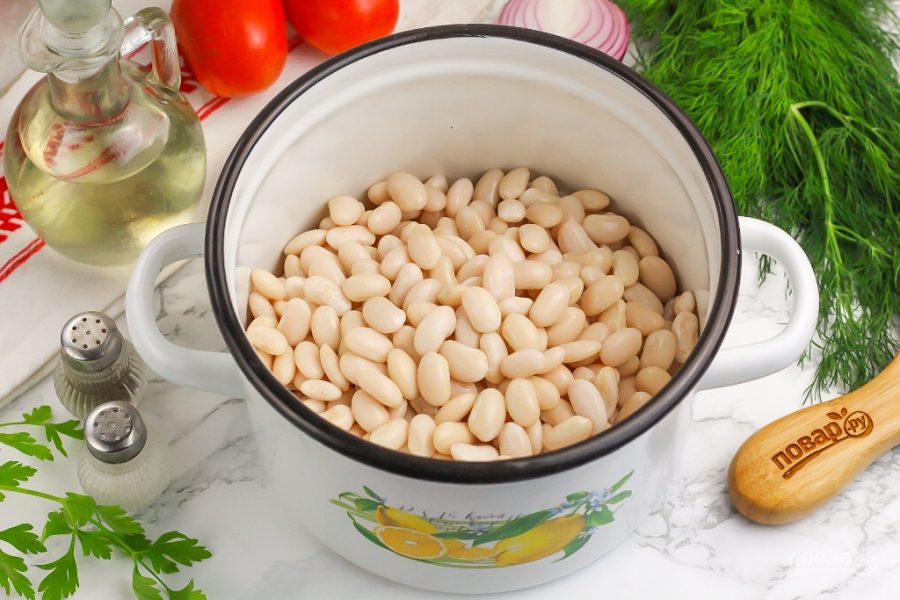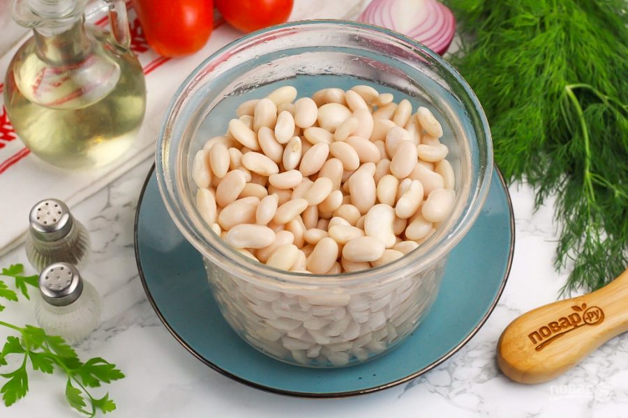 Подготовьте указанные продукты. Приобретите фасоль по своему вкусу: белую, бордовую, красочную и т.д. По желанию можно также добавить в процессе варки специи и пряности к ней.