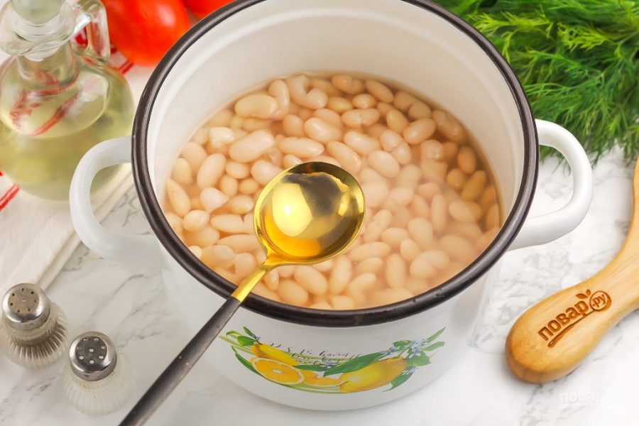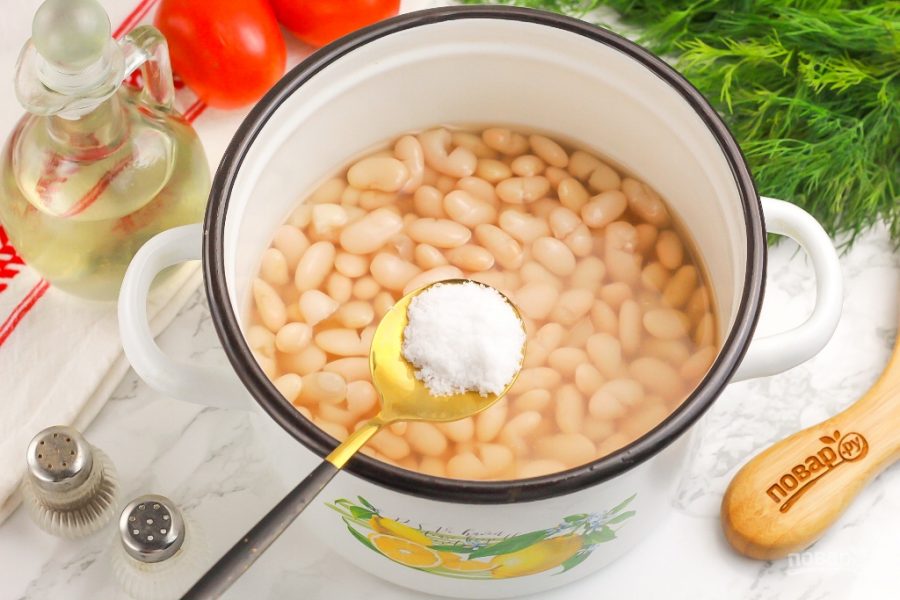 Если фасоль сохранила свою форму, но внутри стала мягкой и сочной, добавляйте соль. Именно в конце, а не в начале приготовления, так как фасоль может стать дубовой и не свариться за указанное время!