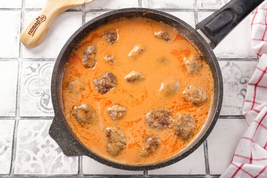 На сковороде разогрейте растительное масло и обжарьте фрикадельки до румяного цвета. Переложите их в небольшую сковороду, кастрюльку или сотейник.