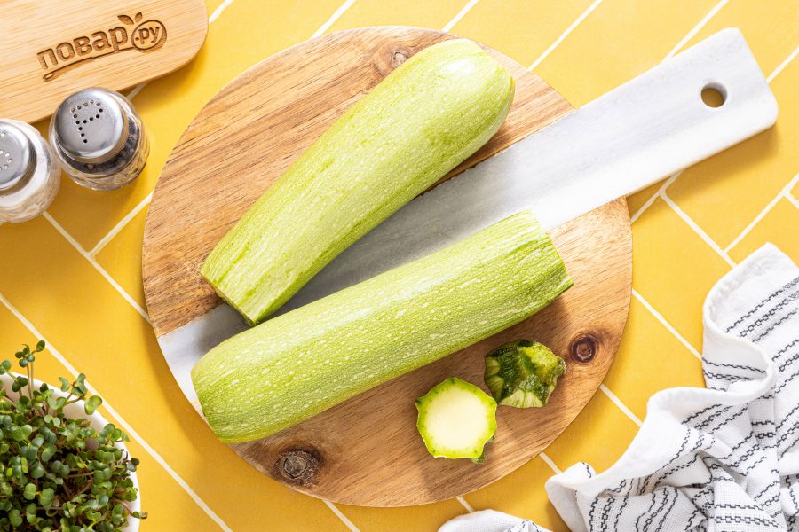 Кабачки помойте, отрежьте кончики с двух сторон.