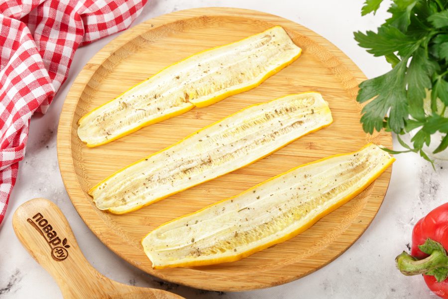 Подготовьте все ингредиенты по списку. Кабачки берите небольшого размера, с тонкой и нежной шкуркой и отсутствием косточек. В зависимости от размера понадобится 1-2 шт.