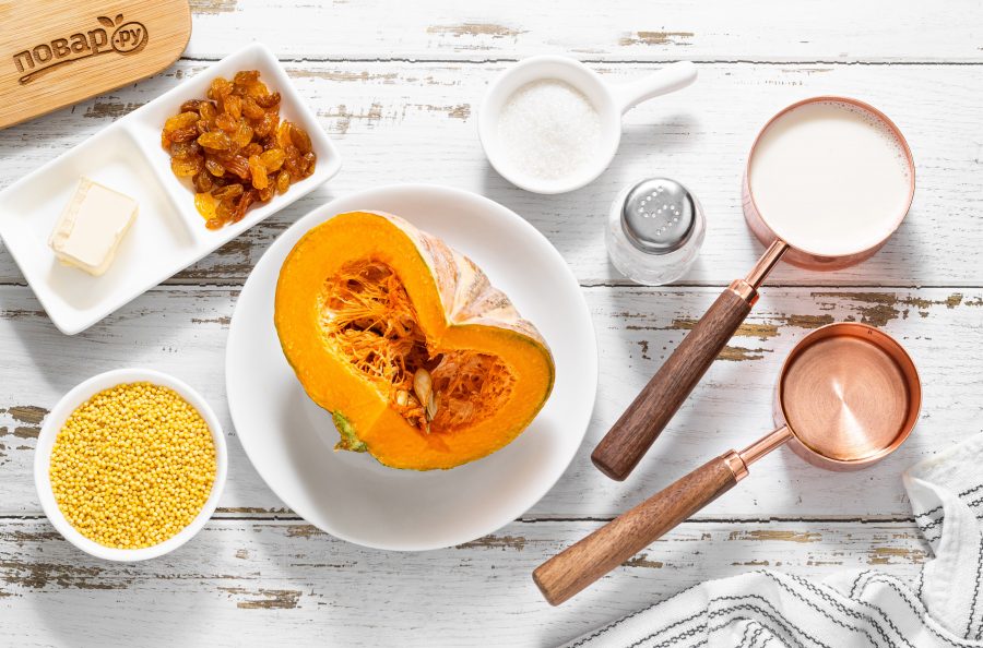 Ниже я расскажу подробнее, как приготовить кашу из тыквы. Тыкву желательно выбирать сладких сортов, ярко оранжевого цвета. Подойдет как свежая тыква, так и заморозка. Пшено можно заменить на рис, овсяные хлопья или манку, а вместо изюма добавить курагу или чернослив. По желанию такую кашу можно дополнительно ароматизировать корицей или ванильный экстрактом. Каша получается яркого оранжевого цвета, нежной и сливочной. Каша хорошо насыщает и отлично подойдет для завтрака!Состав / Ингредиенты: