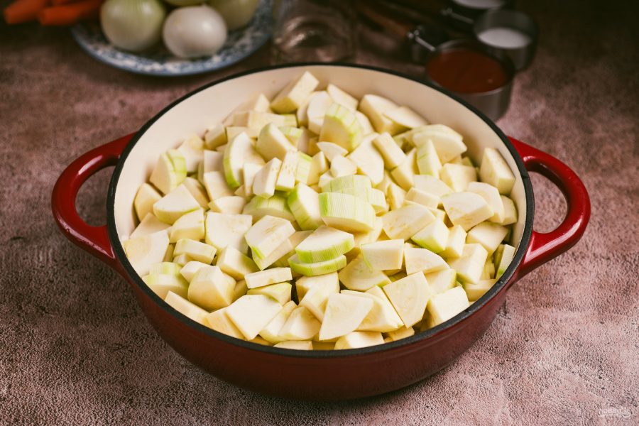 Кабачки все тщательно помойте и снимите с них кожицу овощечисткой, если необходимо,