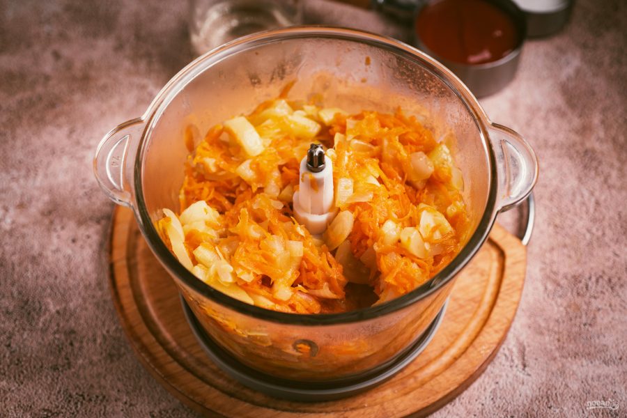 Выложите массу из чаши блендера в просторную сковороду, включите минимальный