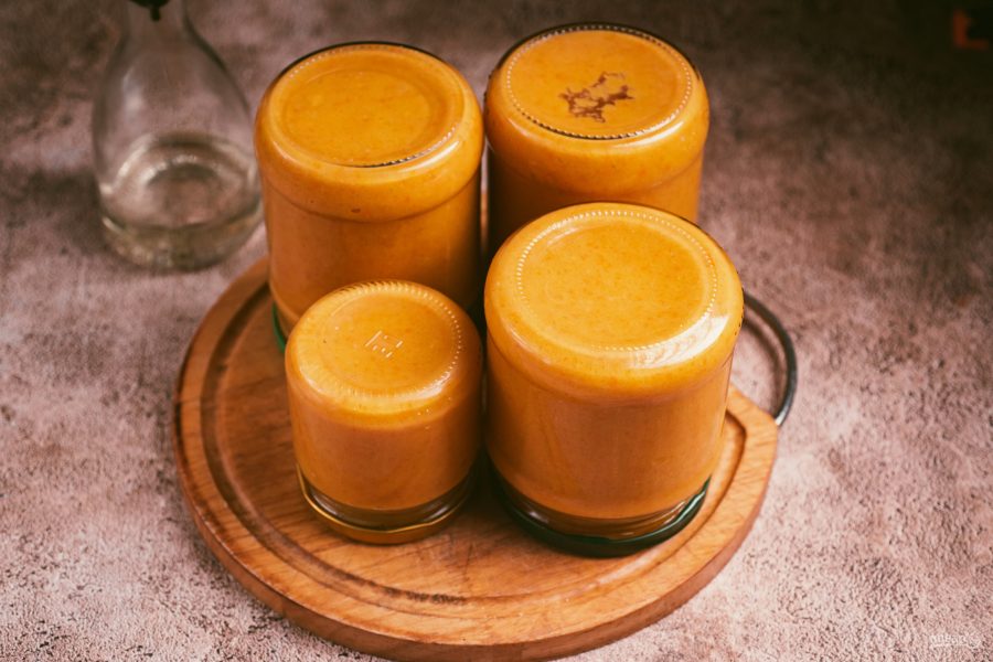 Заранее помойте банки и крышки, простерилизуйте их удобным для вас способом и разложите горячую икру по банкам.