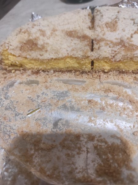 Получается вкусно, но пирог хрупкий, тесто слишком рыхлое и осыпается. Чего-то нужно добавлять!