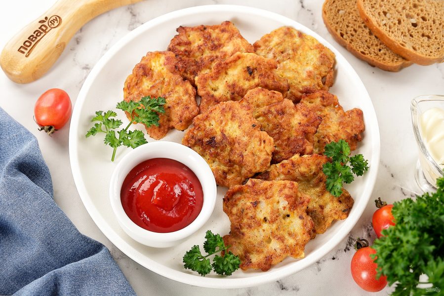 Оладьи из куриного филе с майонезом