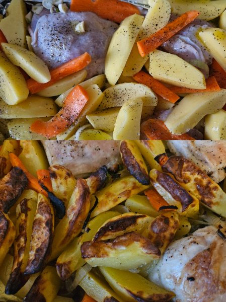 4. Выложить в форму для запекания или в глубокий противень. Отправить в разогретую духовку на 35-40 минут. Чтобы картошечка пропеклась равномерно ее необходимо перемешать каждые 10 минут.