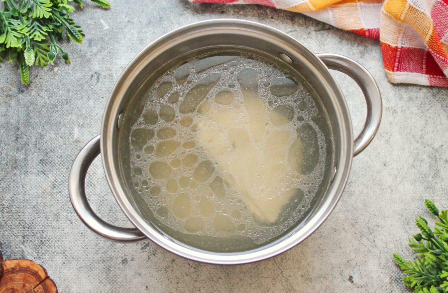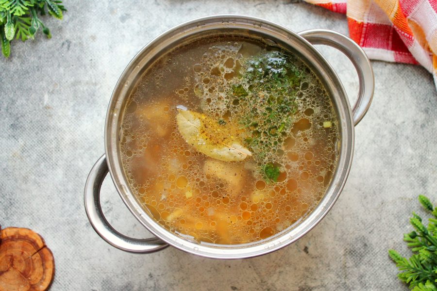 Отварите курицу до готовности, примерно 30-40 минут на среднем огне, снимая пену и не закрывая крышкой кастрюлю.