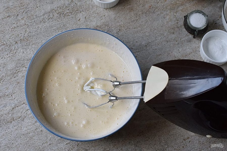 Взбейте яйца с сахаром до пышной устойчивой пены.