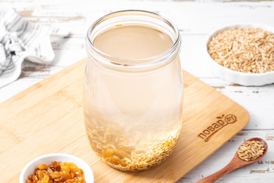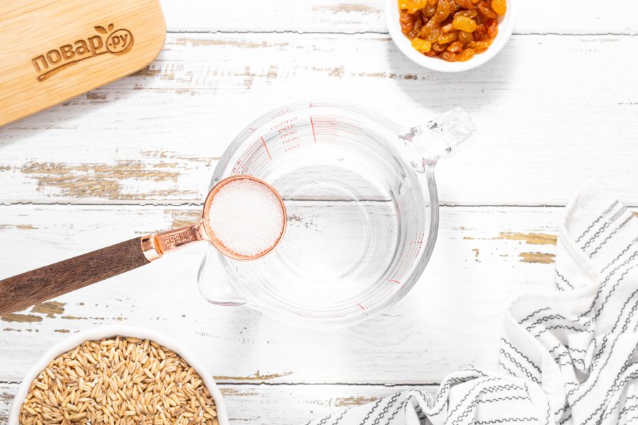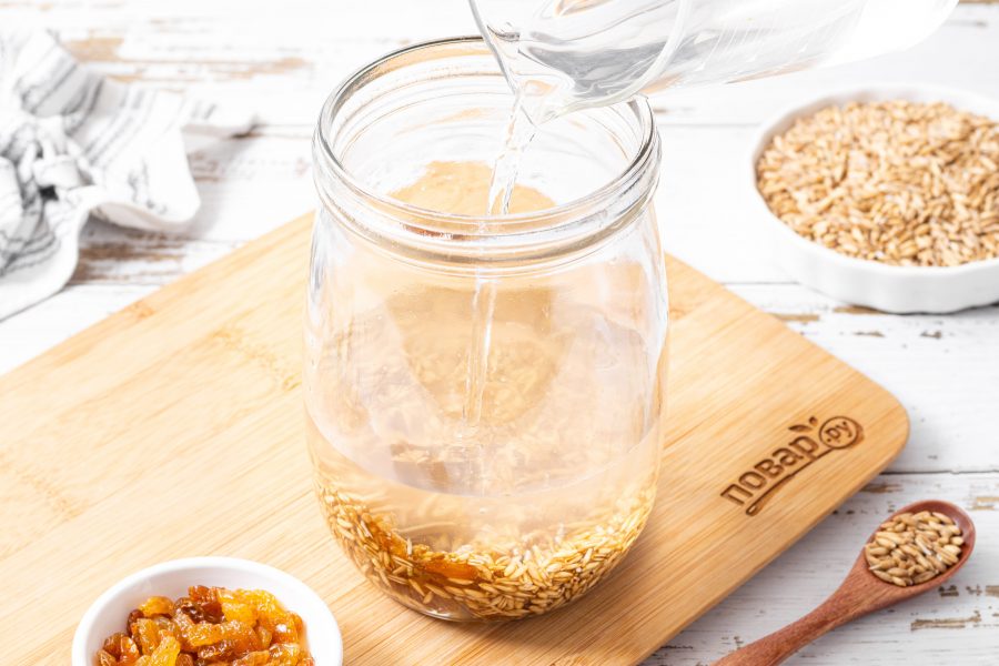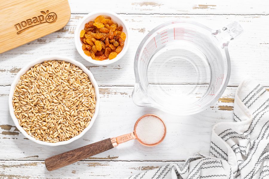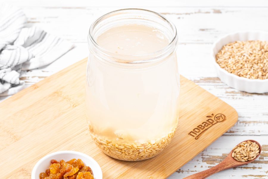 Ниже я расскажу подробнее, как приготовить овсяный квас. Для квас можно использовать овес как очищенный, так и не очищенный. Также можно использовать овсяные хлопья длительного приготовления. Вместо сахара можно добавить мед или жидкий сироп. Ферментировать напиток повторно можно в течение двух месяцев, добавляя только сахар и чистую воду к овсу с изюмом.Состав / Ингредиенты: