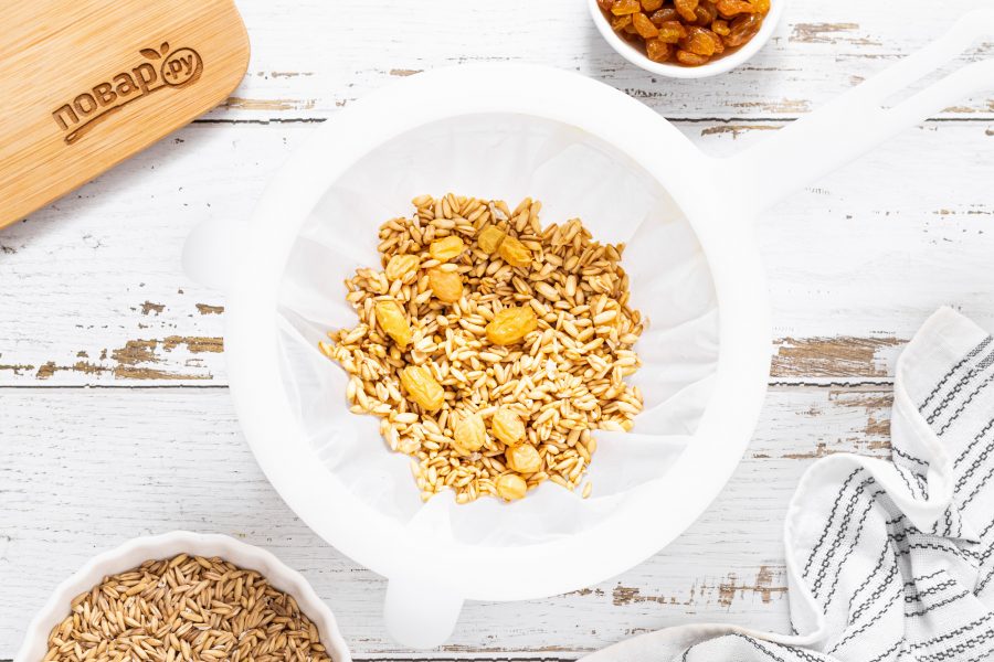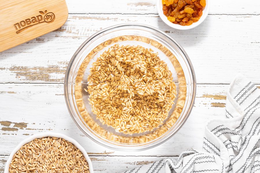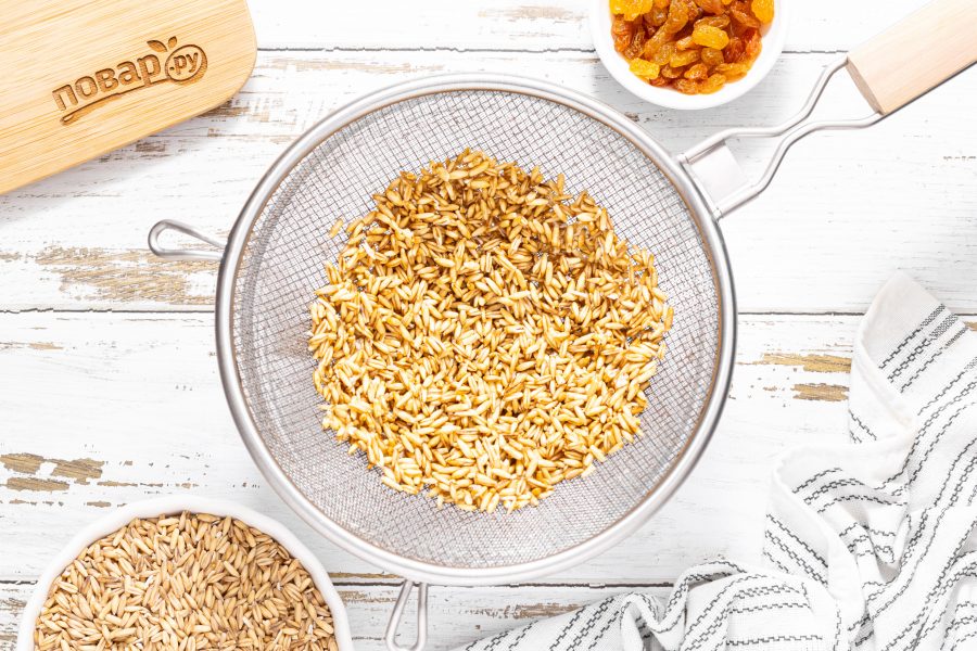Овес переложите в миску и залейте чистой водой, перемешайте. Слейте воду и уберите весь мусор, который может встречаться в овсе.
