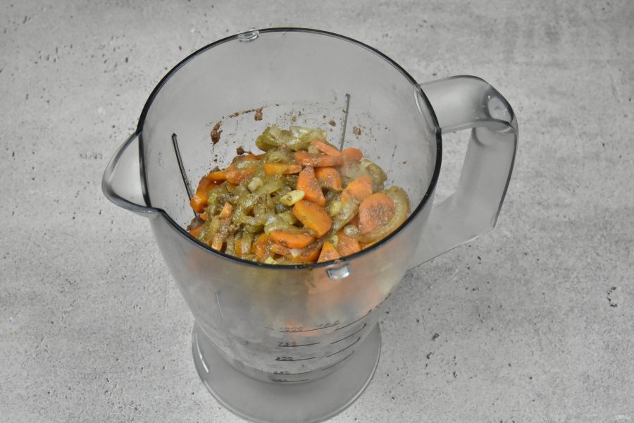 Подготовьте овощи. Очистите лук и морковь, нарежьте овощи произвольными кусочками. Форма нарезки не принципиальна, так как в последствии овощи измельчаются в однородную массу.