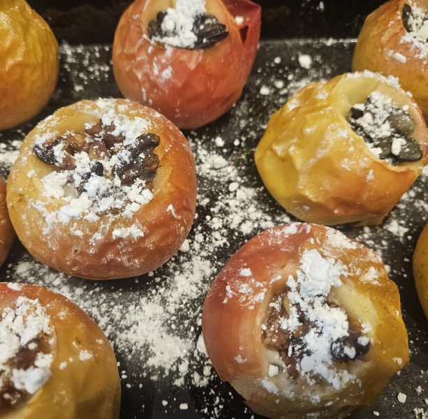 Печеные яблоки в духовке очень полезны для пищеварения. Поэтому десерт этот не только вкусный, но и полезный. Яблоко запекают примерно полчаса или меньше, все зависит от сорта яблок. Печеные яблоки в духовке сохраняют все полезные свойства и их можно съесть гораздо больше, чем сырых. Начинить яблоки можно и медом, и изюмом с корицей, вариантов много. Надеюсь, рецепт печеных яблок в духовке вам понравится ;) Успехов и приятного аппетита!Состав / Ингредиенты:
