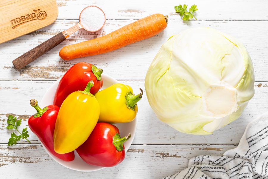 Ниже я расскажу подробнее, как приготовить перец, квашеный с капустой. Капусту выбирайте зимних сортов. Перцы лучше всего подойдут небольшого размера, чтобы они быстрее приготовились. В холоде такая закуска может храниться несколько месяцев. Сладкие перцы фаршируются нашинкованной капустой с морковью, выкладываются в какую-то емкость и обкладываются остатками капусты. Вместе овощи остаются при комнатной температуре на несколько дней, выделяют сок и квасятся. Процесс простой, хоть и занимается какое-то время, но результат вас точно порадует! Особенно здорово, если взять перцы разного цвета, так закуска получится ярче и красивее!Состав / Ингредиенты: