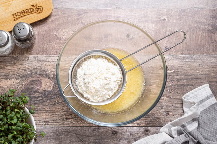 Постепенно начните всыпать просеянную муку и замешивать тесто.