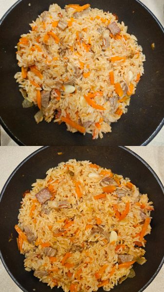 Этот рецепт отличается от других. Перед варкой я распариваю рис, что делает плов нежным и рассыпчатым. Попробуйте приготовить плов на сковороде со свининой по моему рецепту. Уверена, вам понравится.