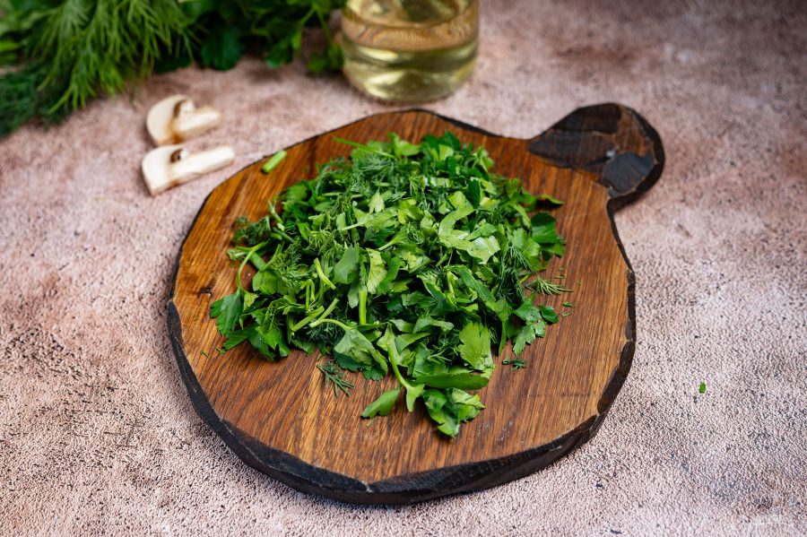 Укроп и петрушку мелко нашинкуйте.