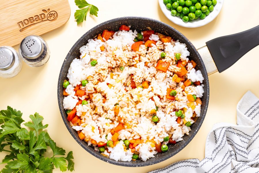 Ниже я расскажу подробнее, как приготовить рис по-тайски с овощами. Рис выбирайте длиннозернистого сорта, например, жасмин или басмати. Из овощей также можно добавить зерна кукурузы, стручковую фасоль или цукини, а из зелени кинзу или зеленый лук.Состав / Ингредиенты: