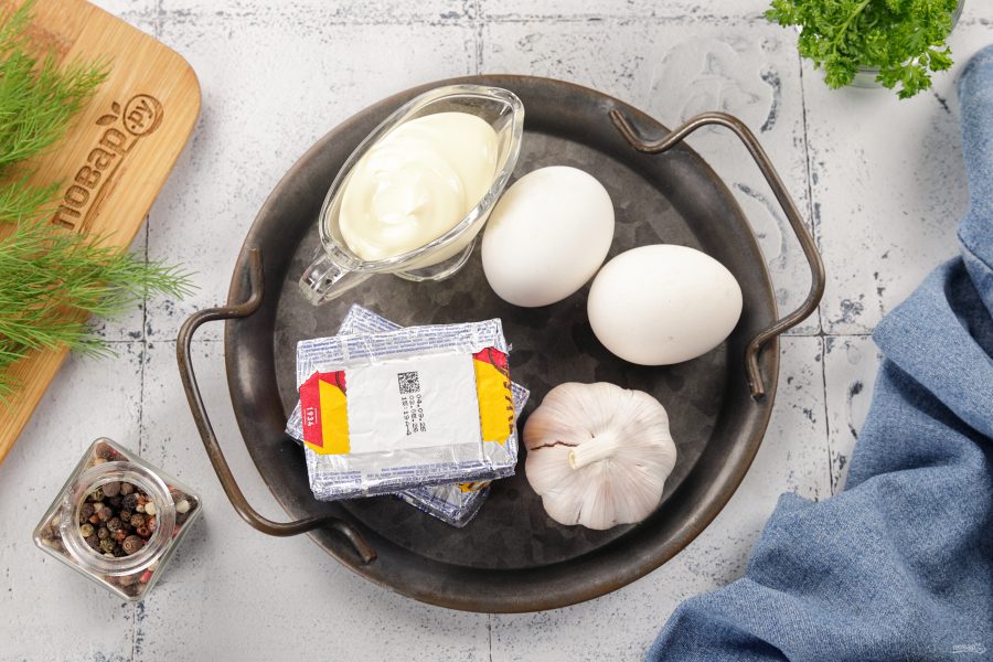 Салат-закуска из сыра с чесноком и майонезом