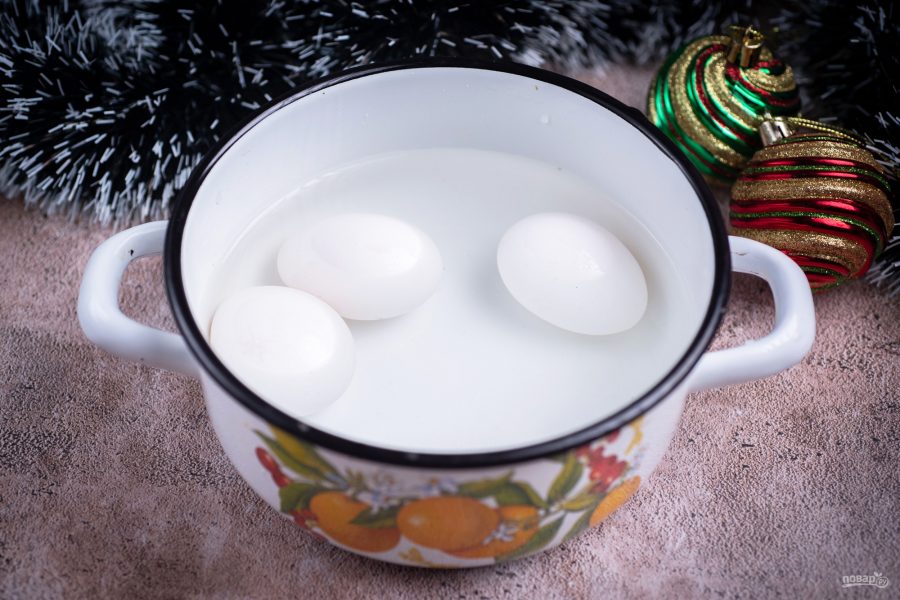 Отварите яйца в кастрюле с водой до состояния «вкрутую».