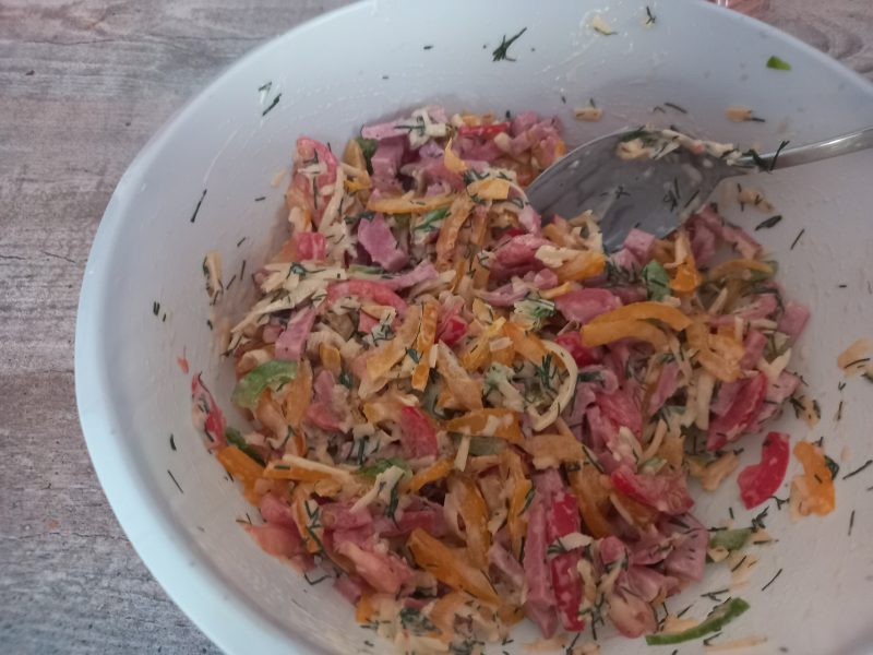 Оценить рецепт Салат с болгарским перцем и колбасой