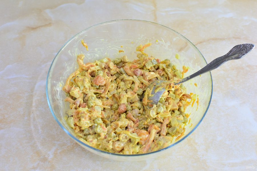 Салат с курицей и макаронами