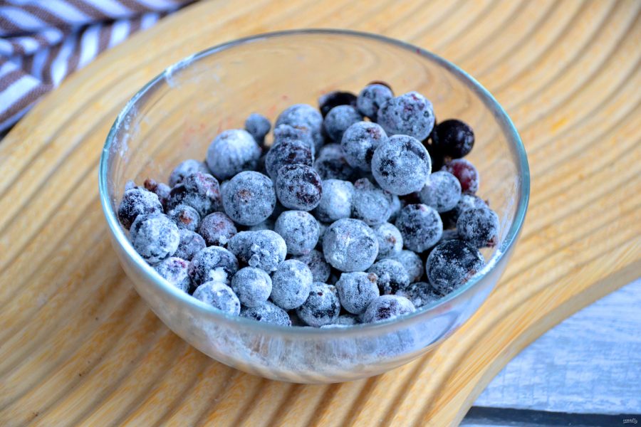 Чтобы смородина не упала на дно во время выпечки, пересыпьте ее слегка мукой. Если используете замороженную смородину, как в этом рецепте, предварительно размораживать ее не обязательно.