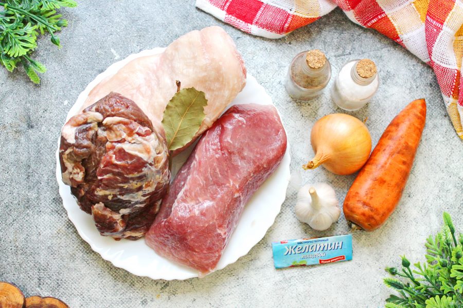 Подготовьте все необходимые ингредиенты для приготовления студня.