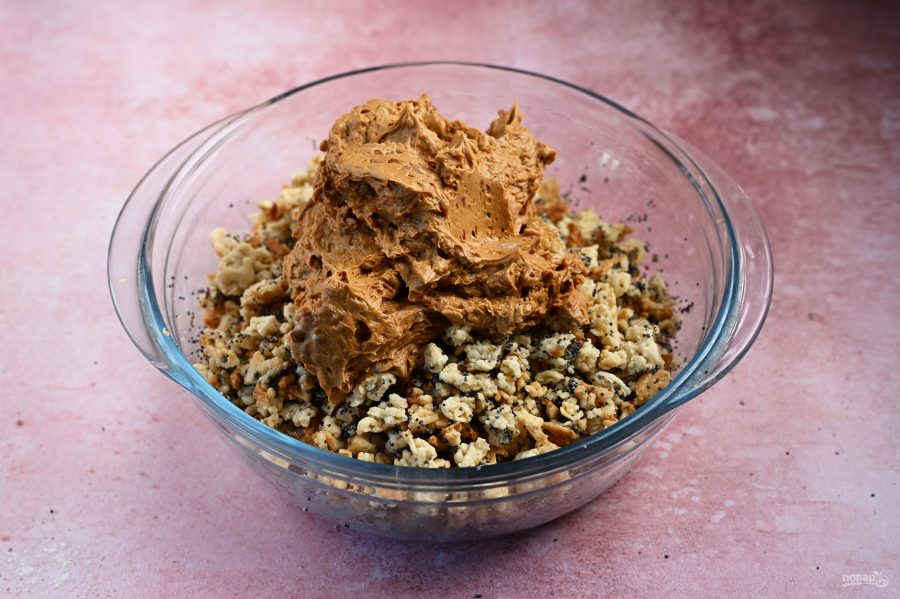 всё делается проще - 4 стакана муки ,пол стакана сахара ,пол стакана сметаны и маргарин прогретый до жидкости на огне - не надо держать в холодильнике а прямо это тесто через мясорубку на противень - минут 20-25 и крошить в миску где крем(сгущёнка любая варёная -неварёная плюс масло) - выложить горкой (как муравейник) и посыпать маком но(!) мак надо залить одним стаканом воды и на огне довести до сухости т е выпарить всю воду тогда мак будет именно сыпаться по муравейнику а потом на 4 часа в холодильник и всё Делаю вечером - утром прекрасный и главное сытный торт готов Но самое удобное состоит в том что его без проблем можно перевозить в транспорте и все мои сотрудники как правило ждали именно это изделие на мой д рождения и им вкусно и мне без проблем