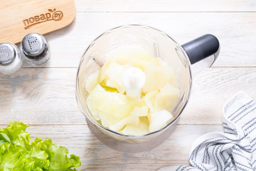После измельчите капусту в блендере или прокрутите через мясорубку, а затем отожмите от лишней жидкости.