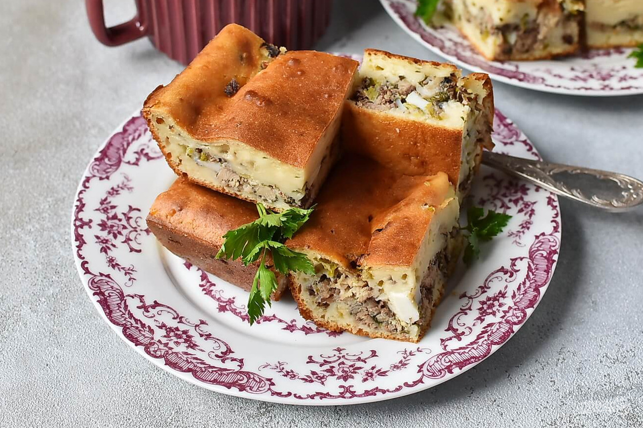 Заливной пирог с консервированной рыбой