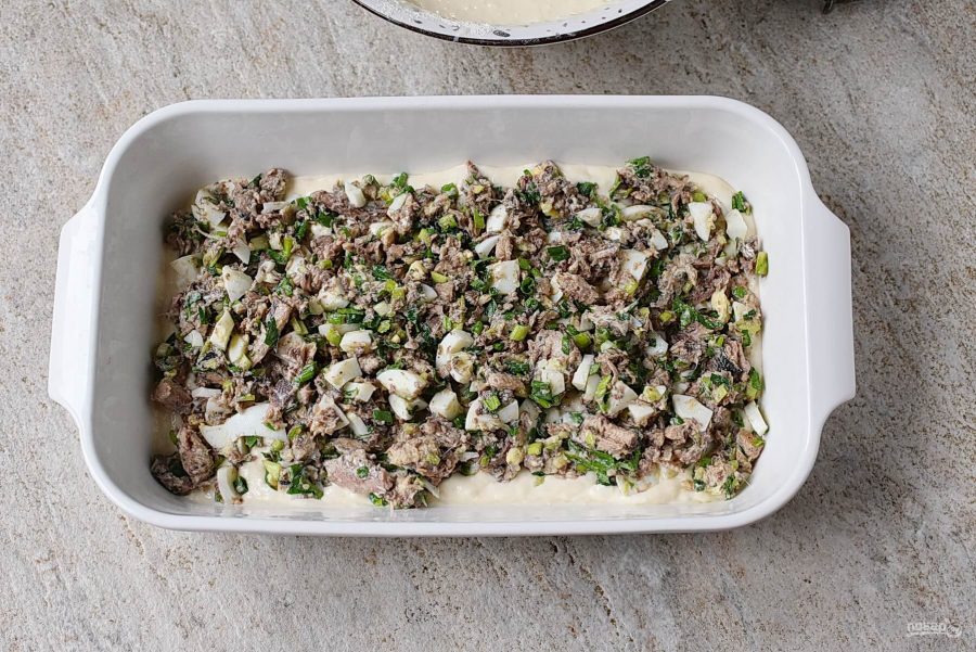 Рыбный пирог из консервов с майонезом